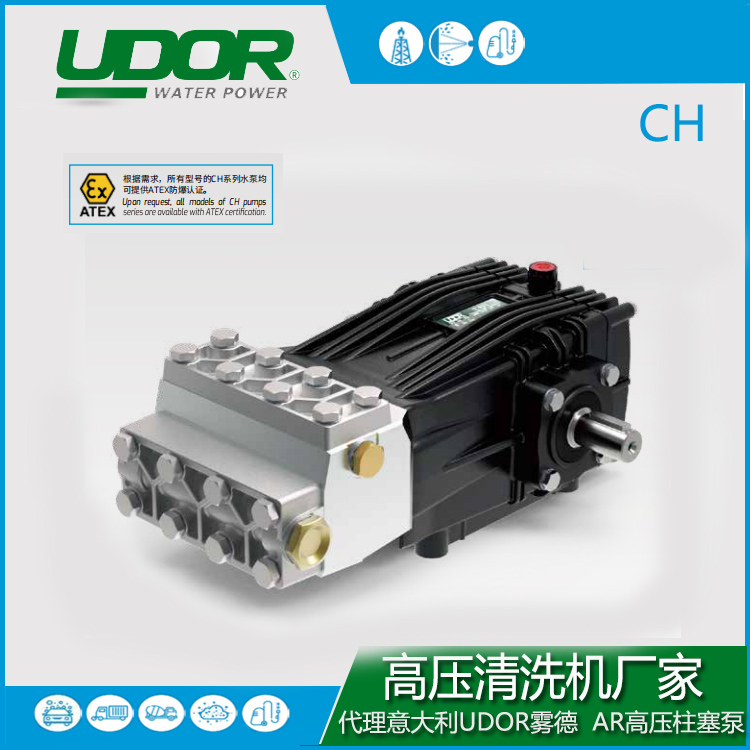 意大利进口雾德UDOR高压柱塞泵CH系列适用于压力清洗、喷水、石油天然气工业、采矿/钻井工业。
