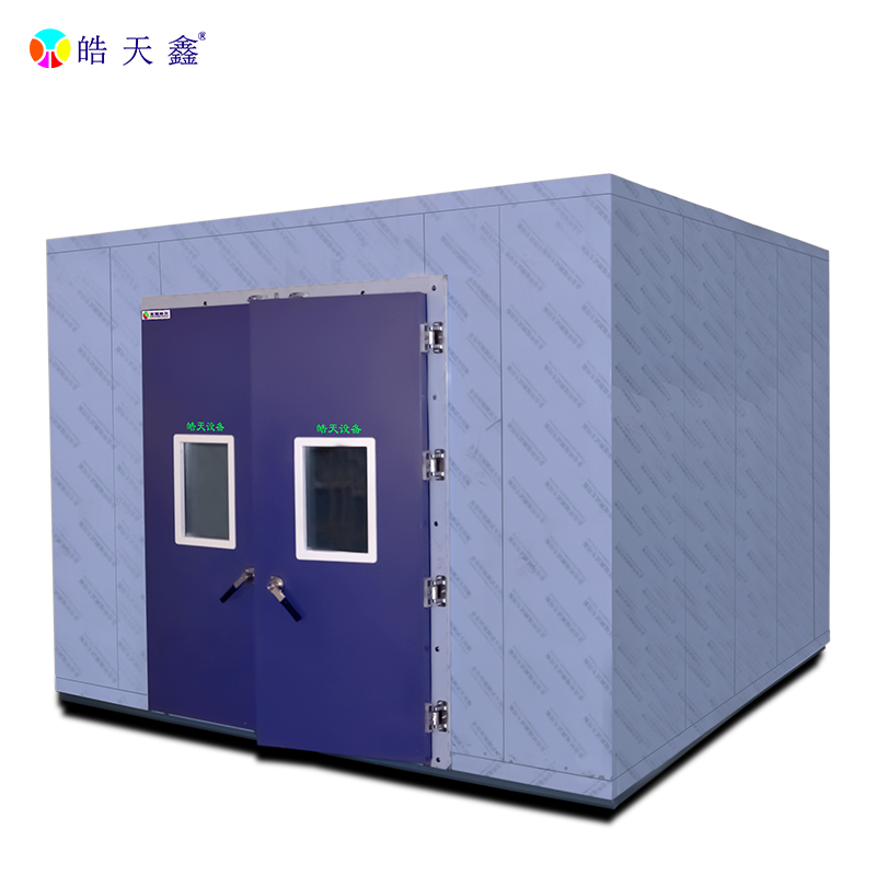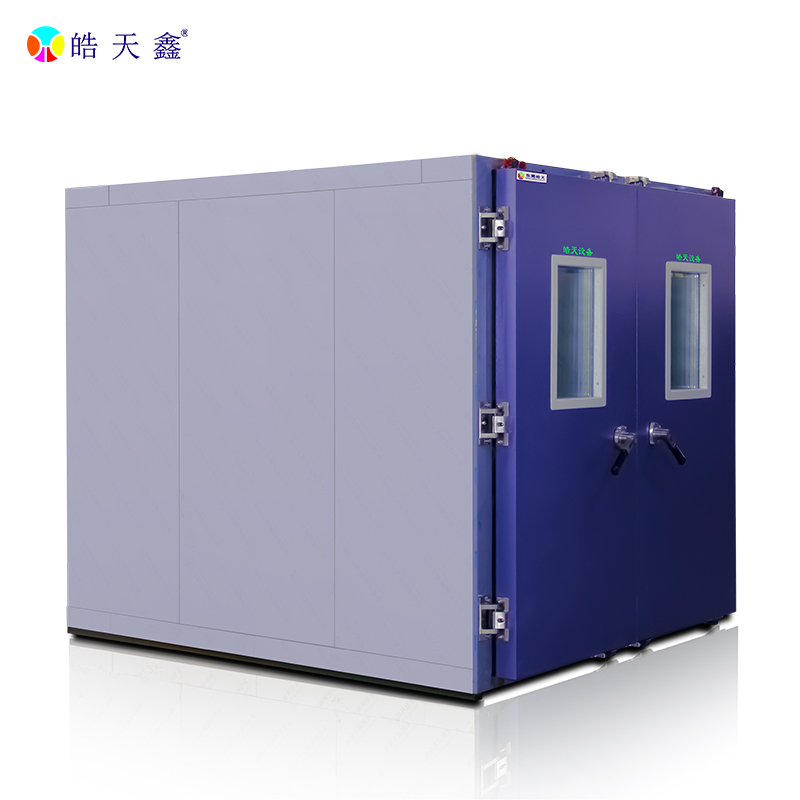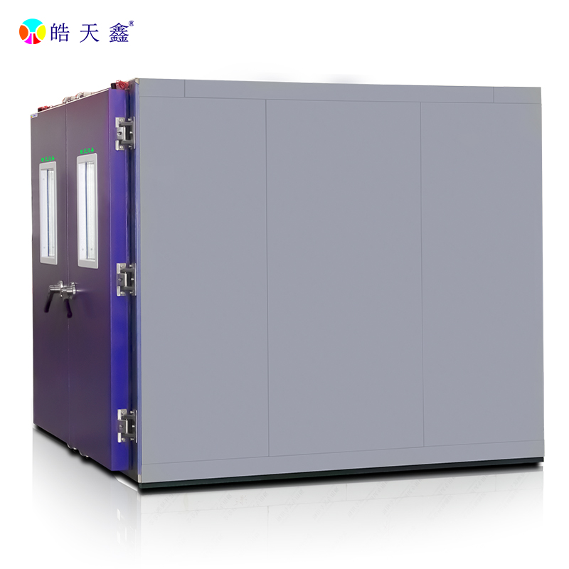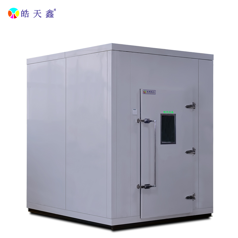 以便于在水平条件下能承受室体及人员试件的重量,而不产生室体底面凹凸不平及开裂等。承受力200kg/每平方米 ,室体(试验室主体(壳体))分为六个室体面及一扇式室体大门,尺寸为1800×2000 mm,室体材料为内胆不锈钢板(防止长时间在湿度运行状态下内壁生锈),外胆为彩钢板(国内),保温介质为聚氨脂硬质发泡隔热,质轻耐抗击,隔热性能佳,步入式恒温恒湿试验箱大门材料同样为彩钢板制成,大门拉手为内外开启式,以便于试验人员从封闭的室内自由开启大门。