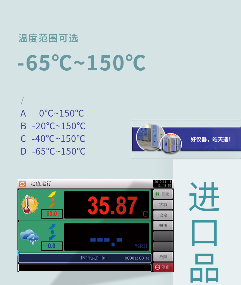 为了保证试验箱降温速率和低温度的要求,本试验箱采用一套进口德国半封闭压缩机所组成的二元复叠式水冷制冷系统(需在室外安装每小时冷却水量为10吨的循环冷却水塔,由用户提供)。复叠式制冷系统包含一个高温制热循环和一个低温制冷循环,其连接容器为蒸发冷凝器,蒸发冷凝器是也到能量传递的作用,将工作室内热能通过两级制冷系统传递出去,实现降温的目的。制冷系统的设计应用能量调节技术,一种行之有效的处理方式既能保证在制冷机组正常运行的情况下又能对制冷系统的能耗及制冷量进行有效的调节,使制冷系统的运行费用和故障率下降到较为经济的状态。