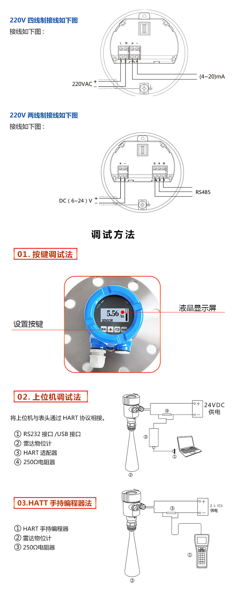 信号输出:4~20mA/HART(两线/四线)