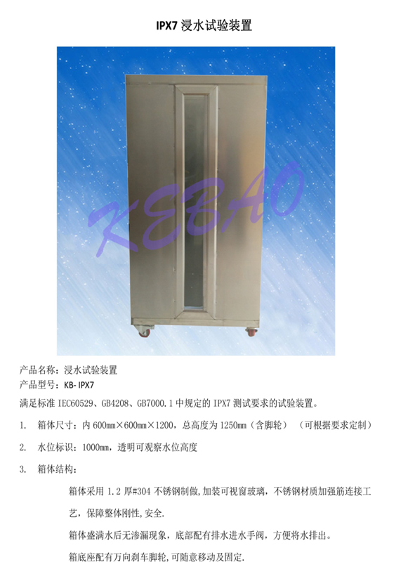 淋雨试验箱主要适用于电子电工,航空航天,等科研单位外部照明、信号装置及汽车灯具外壳防护试验检测。