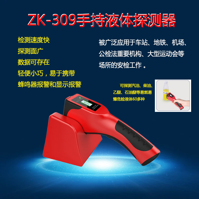 手持危险液体探测仪ZK-309是一种用于检测液体物质是否存在危险特性的手持式探测仪器。它能够快速、准确地检测出液体物质是否具有易燃、易爆、有毒等危险特性,从而保障人员和财产的安全。该探测仪具有以下特点: