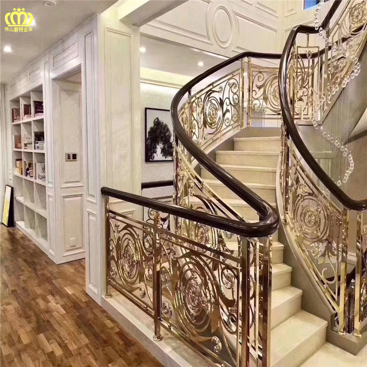 弧形铜板雕花护栏豪华K金色