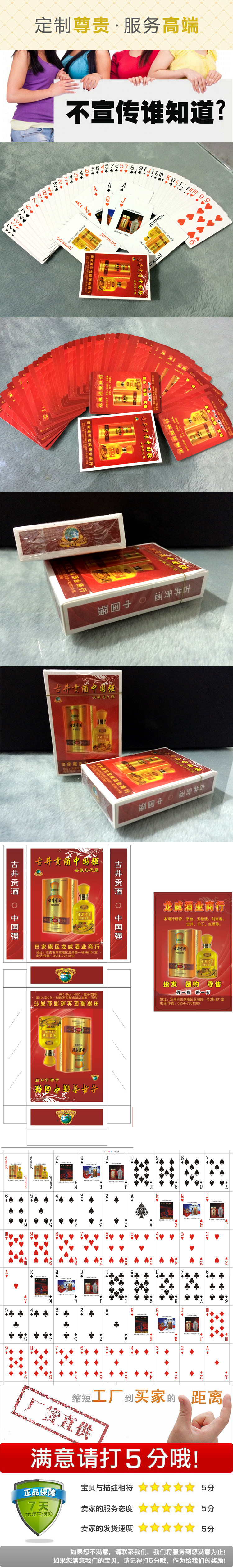 2)纸张成本更高。普通扑克一般使用240gsm到255gsm的白板纸就可以了。而广告扑克使用的是260g/m2、270g/m2的铜版灰芯纸,甚至是300gsm、330gsm的进口高档黑芯专用纸(美国赌城拉斯维加斯使用的纸张)、比如,一张330gsm的进口高档黑芯专用纸的价格就达8-9元/张,而这一张纸只能印制两副高档扑克牌,自然其成本将高出很多。每副普通扑克图片的纸张成本只有0.50到0.98元不等。