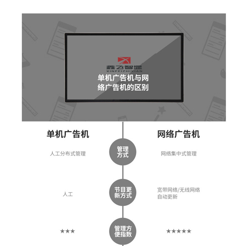 1.终端采用Linux平台,后台发布系统运行环境支持Window XP、Window 7等, 远程发布多媒体信息,WEB后台管理包括终端管理、样式管理、任务编排、权限管理、系统管理。