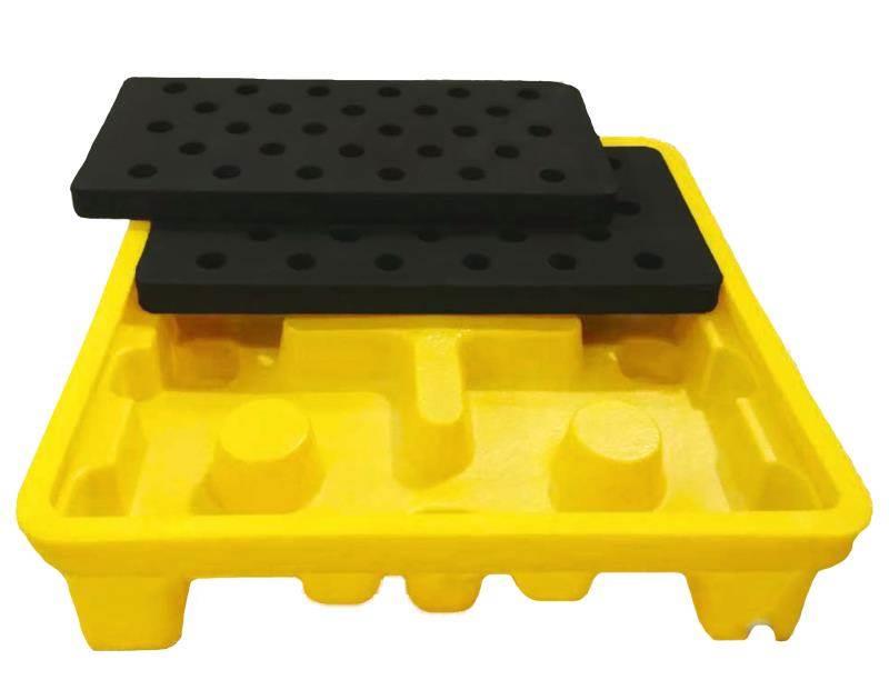 防泄漏托盘也叫盛漏托盘、防溢漏托盘、防溢出托盘、油桶托盘、防渗漏托盘、防溢漏托盘、盛漏油桶托盘、接油盘。叫法很多,但实质都是一个,就是盛漏托盘,把泄漏的危险品盛起来,以防止产生环境污染,盛漏托盘用于化学品原料桶的防漏存储,新型加高设计,储存的泄漏量更大,尤其适用于腐蚀性化学品的原料仓库、化学品临时仓库进行化学品储存分装使用。