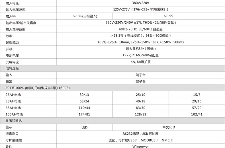 1% 输出电压精度,0.1% 输出频率精度,1%并联均流,输出性能稳定可靠