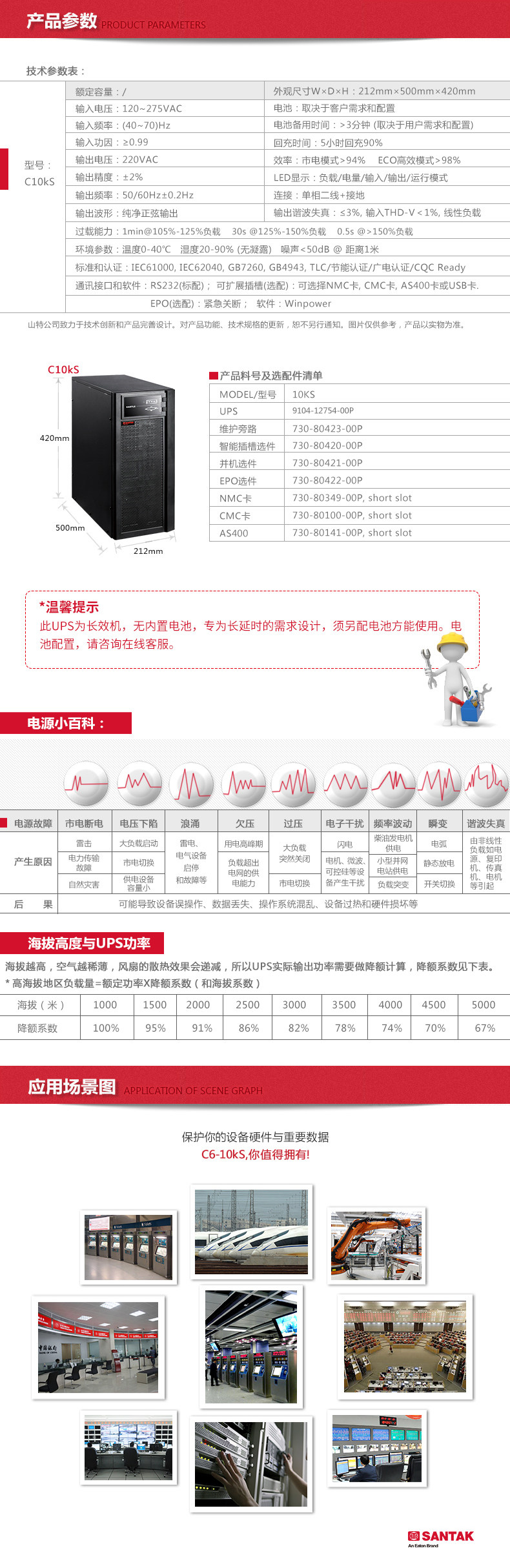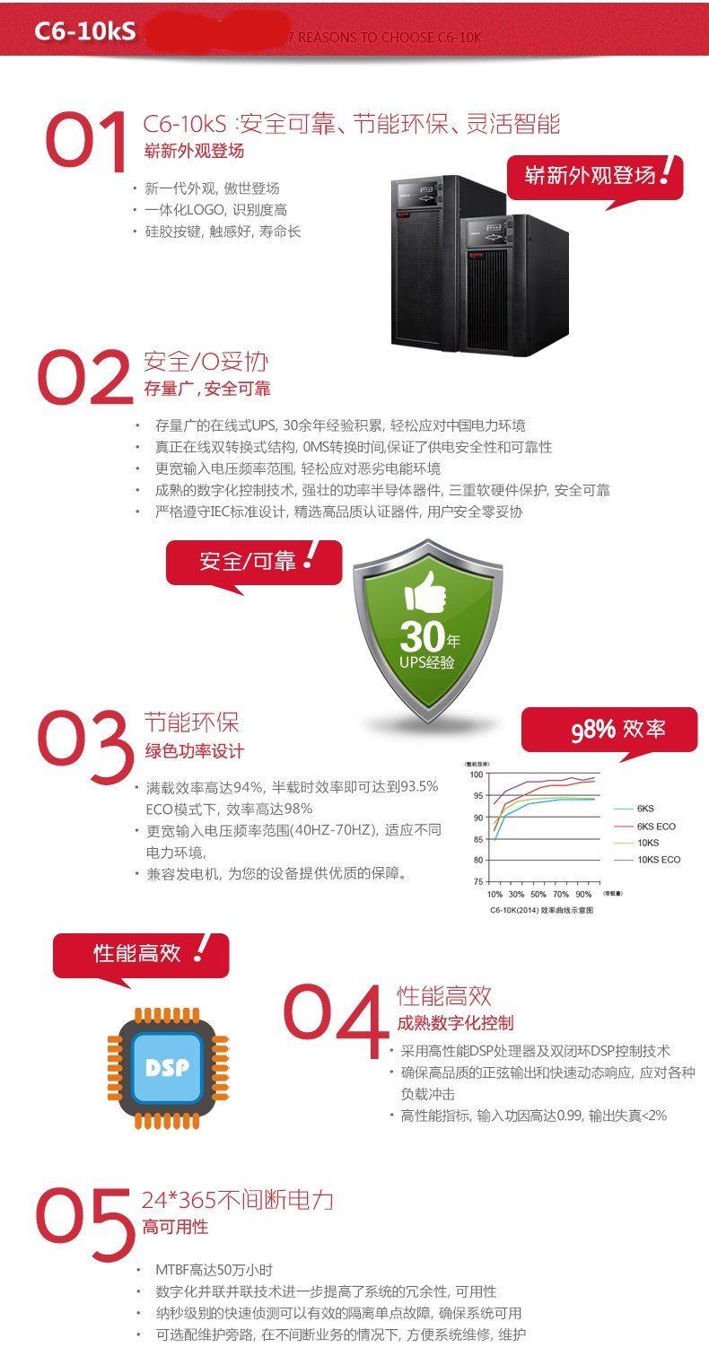 山特UPS电源(新款)城堡系列C6K(S)~C10K(S)是一款具有强大适应性、配置灵活的产品。采用先进的DSP数字控制技术,有效提升了产品性能和系统可靠性,并实现更高功率密度的集成和小型化。同时为了全方位满足用户的个性化需求,城堡系列C6K(S)~C10K(S)提供了非常丰富的可扩展功能,用户可以根据需要灵活配置。