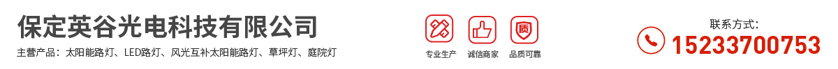保定英谷光电科技有限公司坐落于中国电谷“太阳能之城”——河北保定高新技术开发区,是一家从事以太阳能、风能及其他可再生能源项目的研发、生产、销售、施工、技术服务为一体的高新技术企业,拥有完整、科学的质量管理体系。产品主要包括保定路灯杆、保定监控杆、保定新农村太阳能路灯、廊坊太阳能led路灯、张家口水泥杆太阳能路灯、沧州农村太阳能路灯安装、晋城led太阳能路灯、运城农村太阳能路灯改造、吕梁太阳能路灯杆、太原led路灯、甘肃太阳能路灯、内蒙古风光互补太阳能路灯等光伏应用产品。