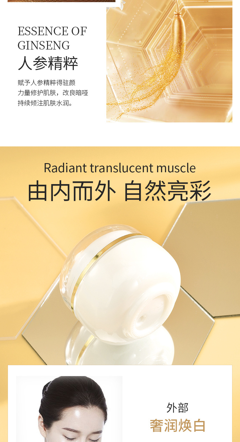 1、滋养肌肤,润泽肌底,修护均衡肤色,维护肌肤,帮助改善肌肤粗糙、肤色不均等问题肌肤,淡化肌肤瑕疵,呈现肌肤细腻光靓;