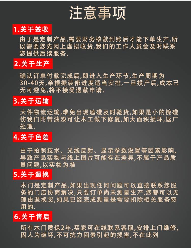 1.为避免尖锐物体撞击和划伤卧室门,不要将重物或挂在门扇上。