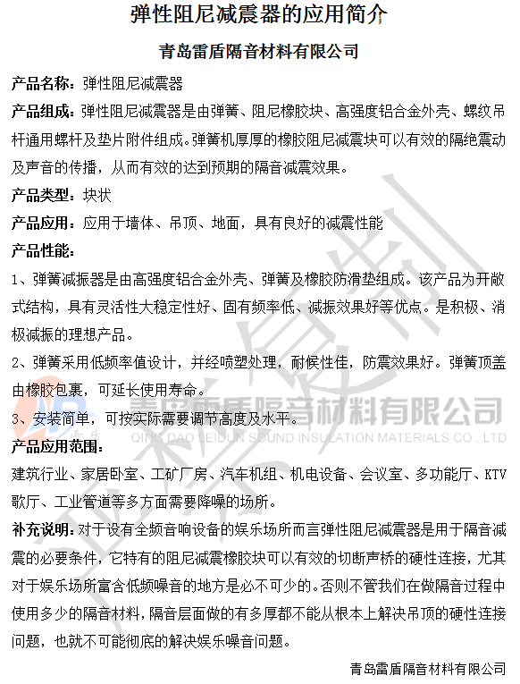 青岛雷盾隔音材料有限公司 减震器