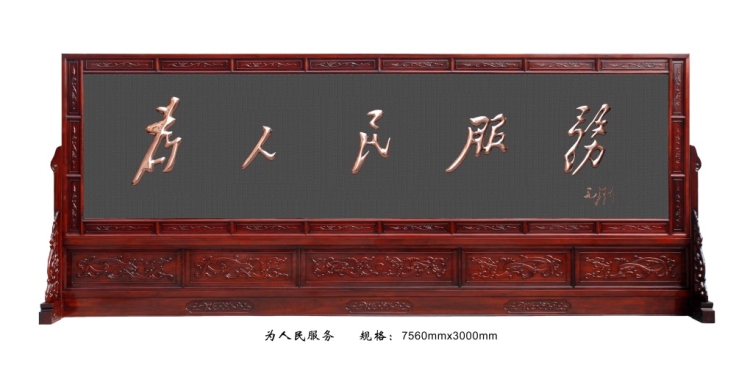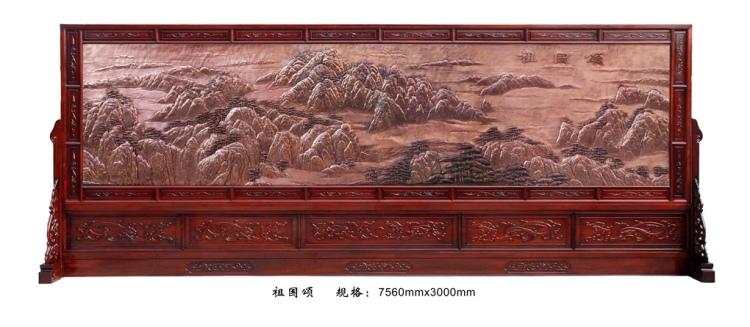 框架选用非洲红花梨木材用传统红木工艺制作,画心选用紫铜材料用精密电铸紫铜浮雕工艺制作。 |