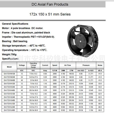 厂家直供 17251仪器设备直流散热风扇 172*150*51mm 品质保证