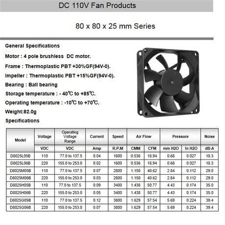 4.80 x 80 x 25 mm (A Series)直流110V风扇(DC110V风扇)