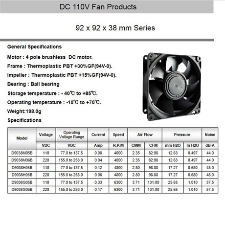 聚风散热AXIAL 9238风扇 替代 ebmpapst DC80V(55-120V=DC) 深圳直流110V风扇