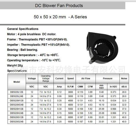 5020鼓风机,5020离心风扇,散热风扇50*50*20MM