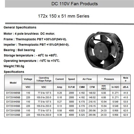 *axial风扇172*150*51mm DC110V(75-145V) 0.22Amp 24W Axial Fans