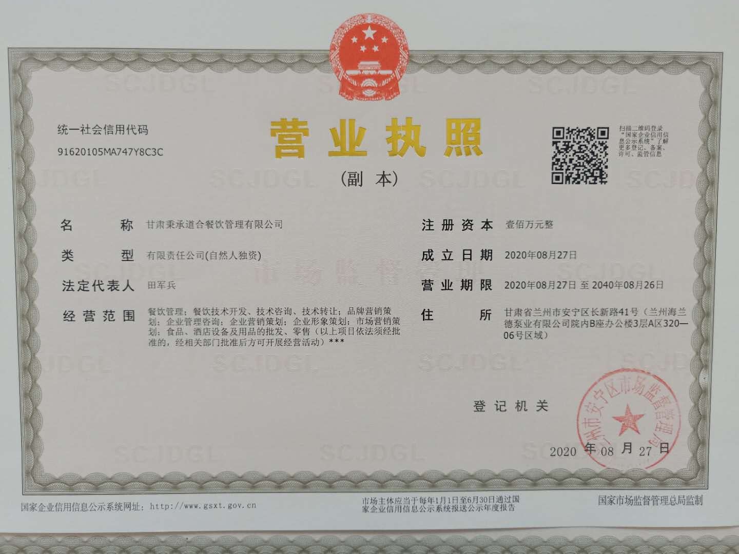 甘肃秉承道合餐饮管理有限公司