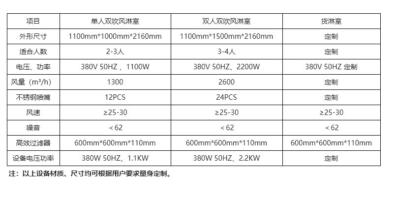 1、进入风淋室时可360度转体,确保吹淋无死角;2、待吹淋结束后,语音系统提示后,推门离开风淋室;3、定期对风淋室