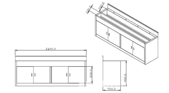 非包边式不锈钢洗手消毒池截面图