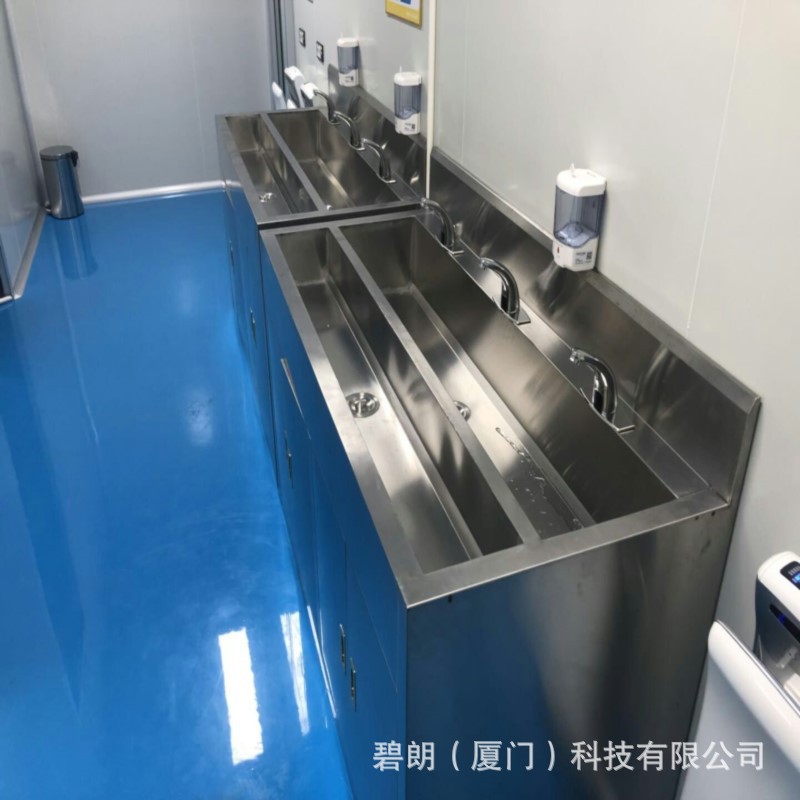 碧朗科技秉承绿色制造理念的机械制造工艺,不锈钢洗手消毒池整体采用食品级304不锈钢材质制作,防腐蚀、