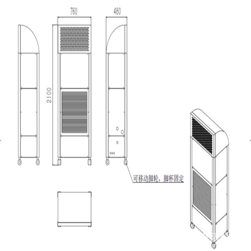 在专用的不锈钢外机支架上或者安放于水泥基座上,确保空气流动畅通。净化机可以每台单独控制,也可