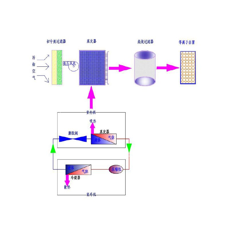 净化空调,有效控制车间环境温度、湿度、洁净的同时净化除菌,次设备为层流净化成本的五分之一。适合用