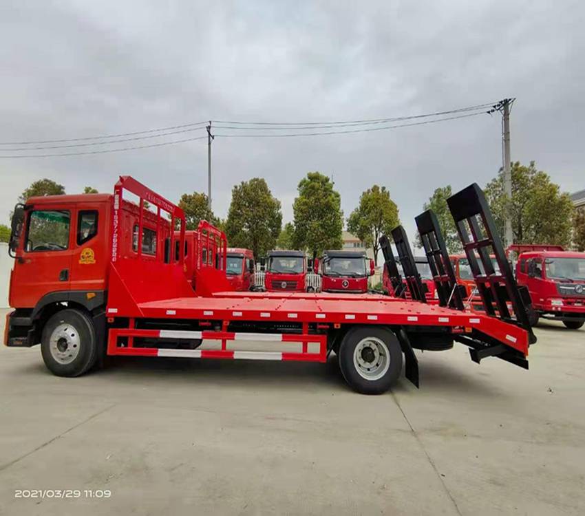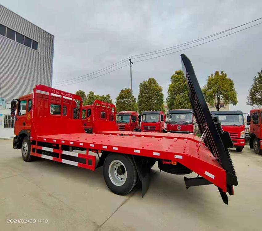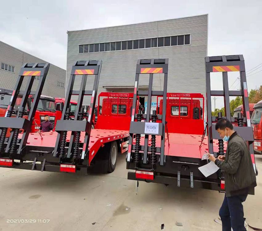 上装配置:本车采用120*100*5MM方管,底板采用5MM或8MM花纹板,带加密斜支撑,爬梯采用双弹簧加强型设计,可选装液压爬梯或折叠加长型液压爬梯,斜坡处带后支腿 可拉15吨挖机 有燃油,有环保,上牌无忧!