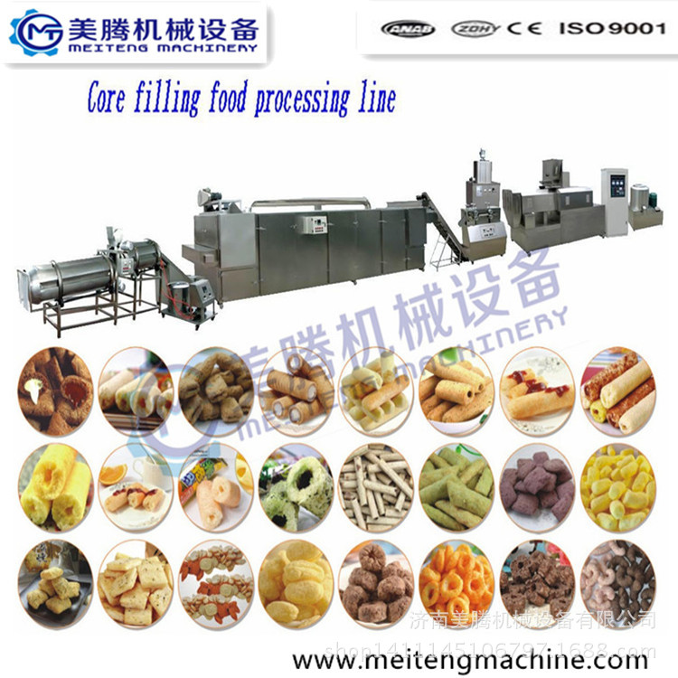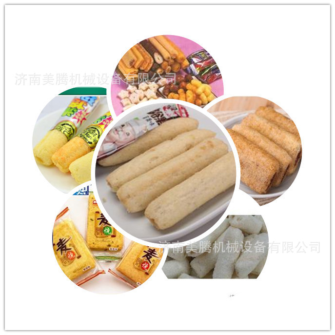 三、生产设备从原料配制、挤压膨化、夹芯、成型、切断、喷涂、调料到出成品一次完成,自动化程度很高。该生产线具有机型多、配置灵活、原料范围广、产品种类多、操作简单等特点,选择合适的配置可生产夹芯饼、夹芯管、膨化米果、麦烧、锅巴、营养早餐、玉米片等产品。经膨化后的食品具有口感酥脆、易消化、香味独特、携带方便,是消费者理想的休闲食品。