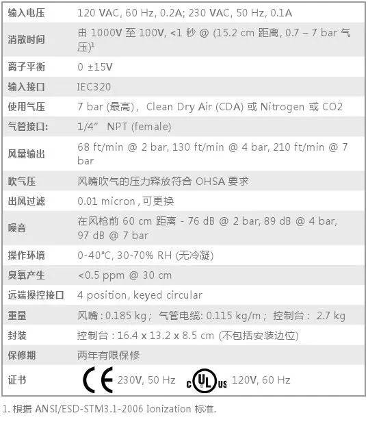orIon离子风嘴有强吹力和高效除静电除尘的功能,它的离子平衡是 ±15 V。内置可更换的 0.01 micron 过滤器,安装在吹风出口,保证出风干净。