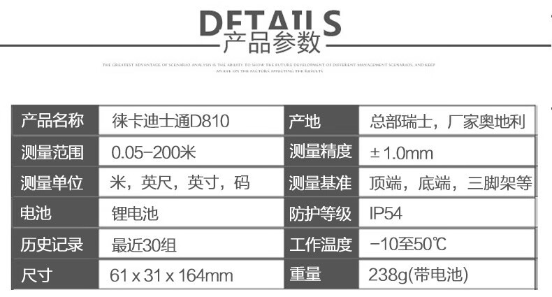 徕卡LeicaD810手持激光测距仪250米 户外高精度红外线电子尺 蓝牙莱卡量房仪 D810标配