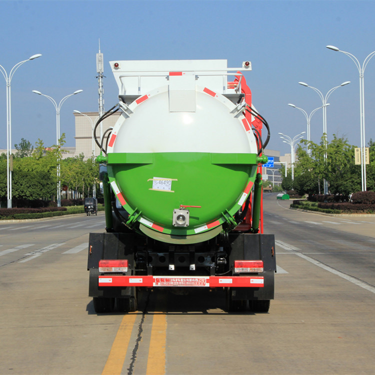 罐体内分上、下两层,下层为固液分离后污水收集箱,污水箱两头高,中间低,端设有出水口,以保证污水排放干净,料口及后门为液压密封,上料为提升拉杆式,罐体带举升自卸功能,让排泄更彻底干净。餐厨垃圾车除了单一的运输、收集外,还可选装固液分离装置、吸污功能、罐体清洗功能等。液压系统由泵、液压阀和顺序阀以及各种功能的液压油缸、高低压管路组成。关键部件可选用原装进口,保证产品工作可靠、安全。垃圾投入口与推板之间有足够距离,推板与罐体内表面设有密封装置,避免餐厨垃圾投入过程及分离过程中溢到推板后方。