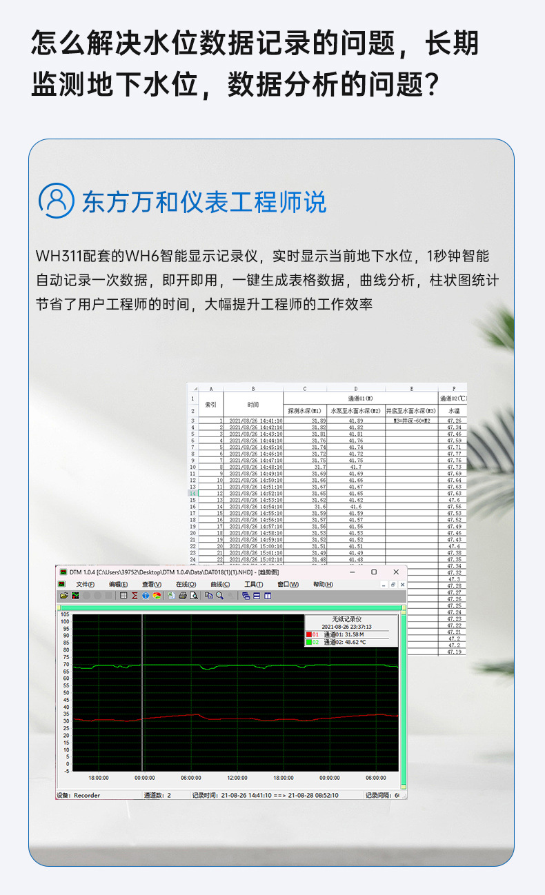 深圳市东方万和仪表有限公司专门针对上述要求开发出一款液位实时监测系统,其中WH311水位探头直接投入安装到消防水池或者水箱的底部,WH6液位专用显示器安装在消防控制中心就可以实时监测消防水箱水池的实时水位,并带有高低液位报警功能,确保消防水箱在满水位运行。