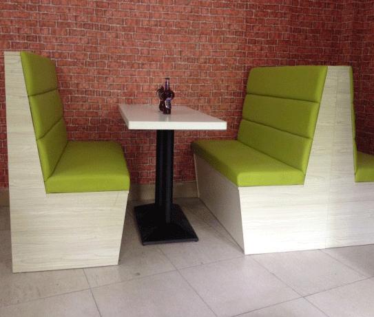 2.如果餐厅有墙裙或者墙壁有颜色,那么卡座沙发就不太适合挑选艳丽的颜色,选择素色面料就会雅致一些;