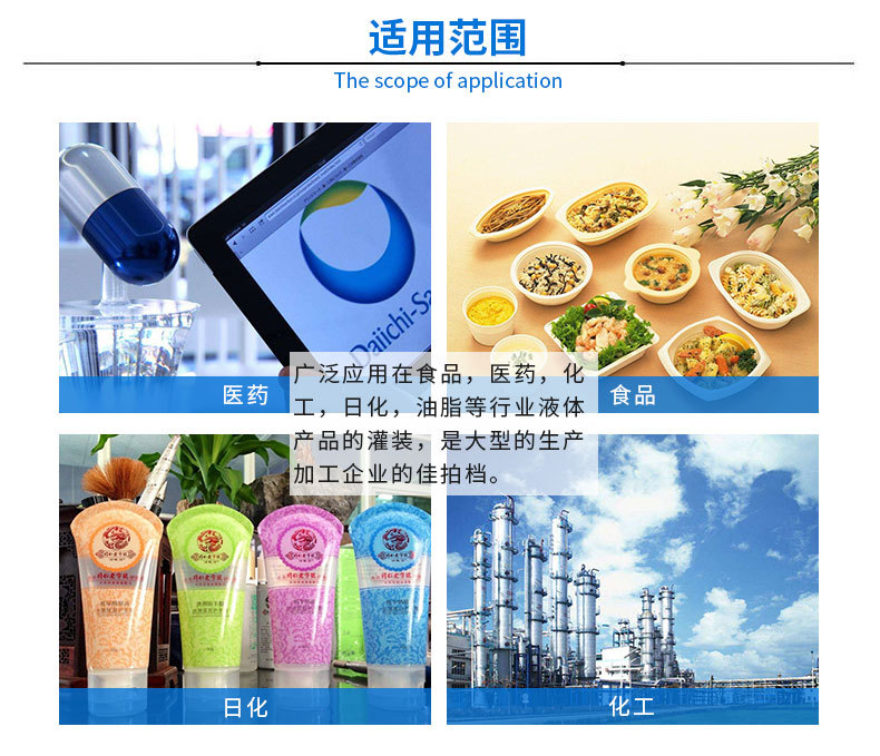该灌装机可应用于各种油类以及粘稠液体的灌装。如:17L润滑油、防冻液、化工原料等