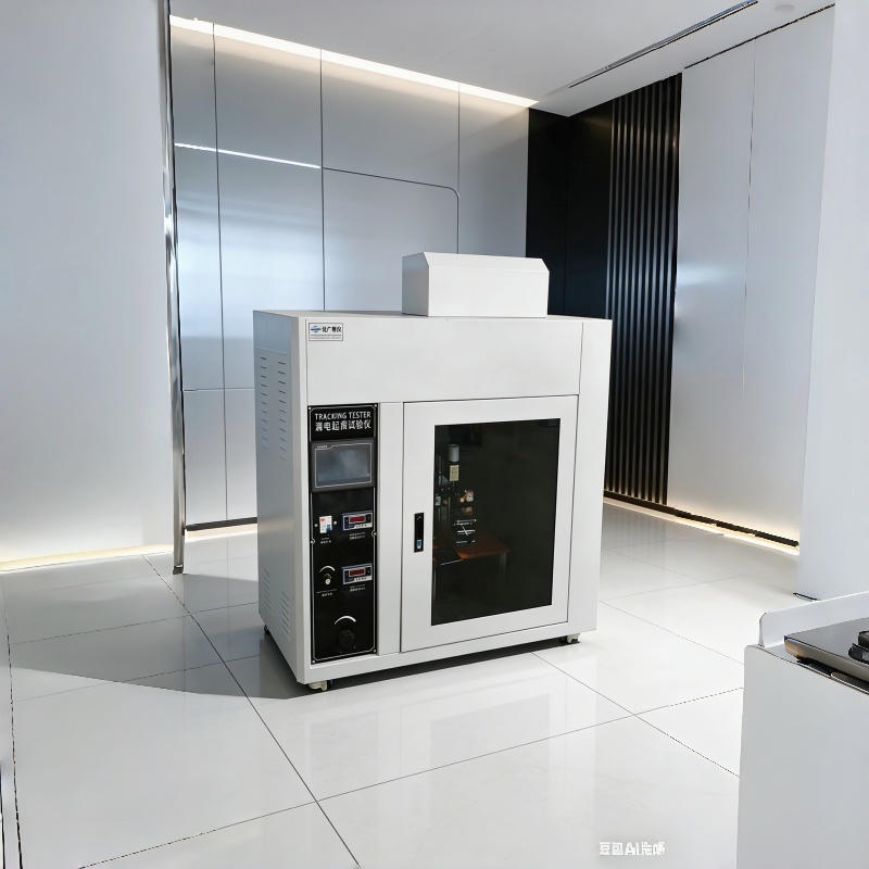 核心用途:用于检测绝缘材料(如塑料、橡胶等)在高电压、潮湿及污染物环境下的耐漏电起痕性能,评估材料是否易因漏电产生导电痕迹导致绝缘失效。