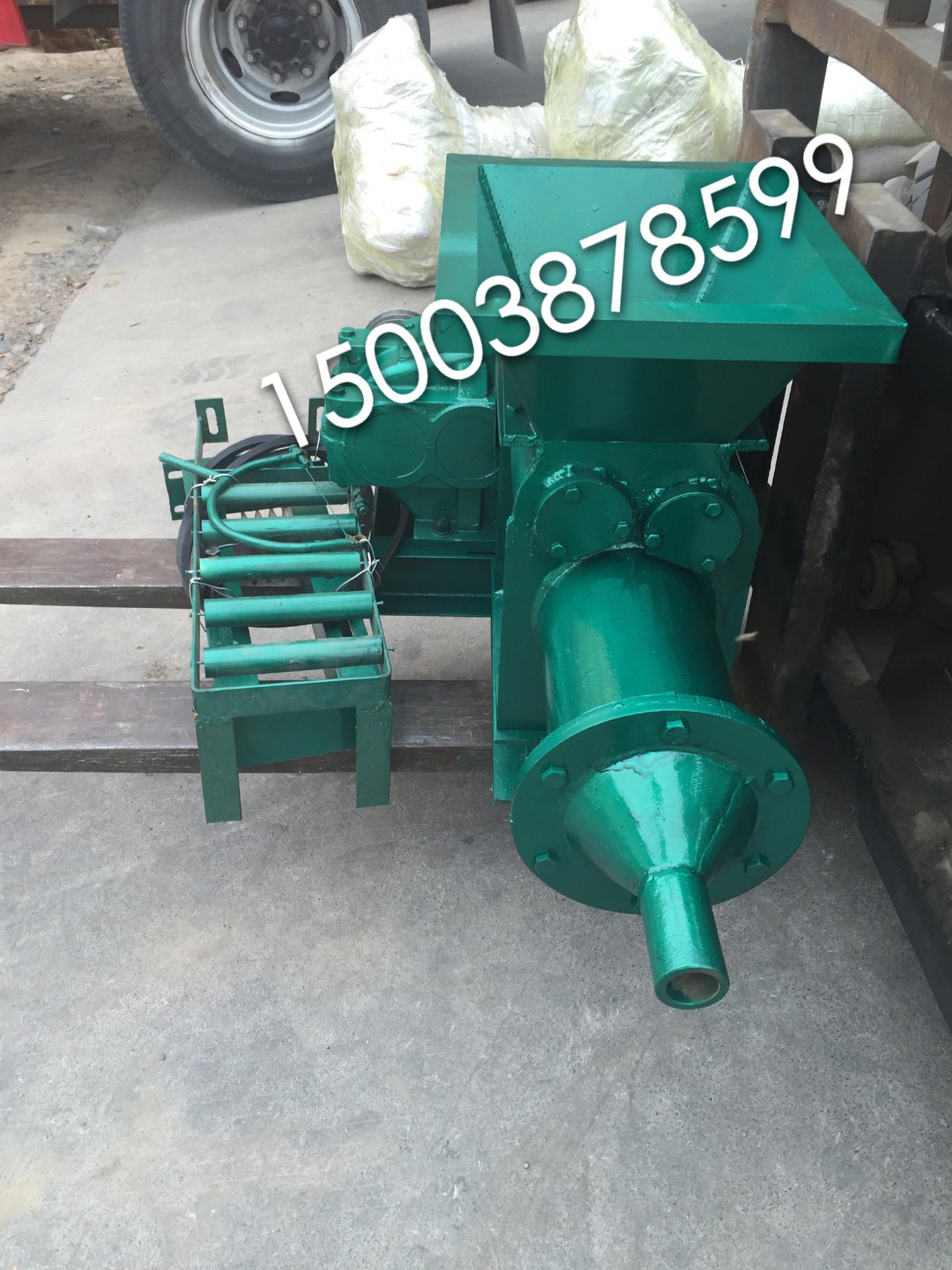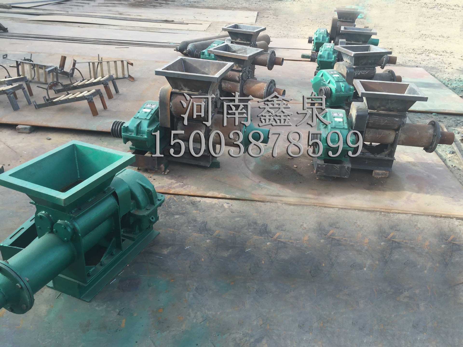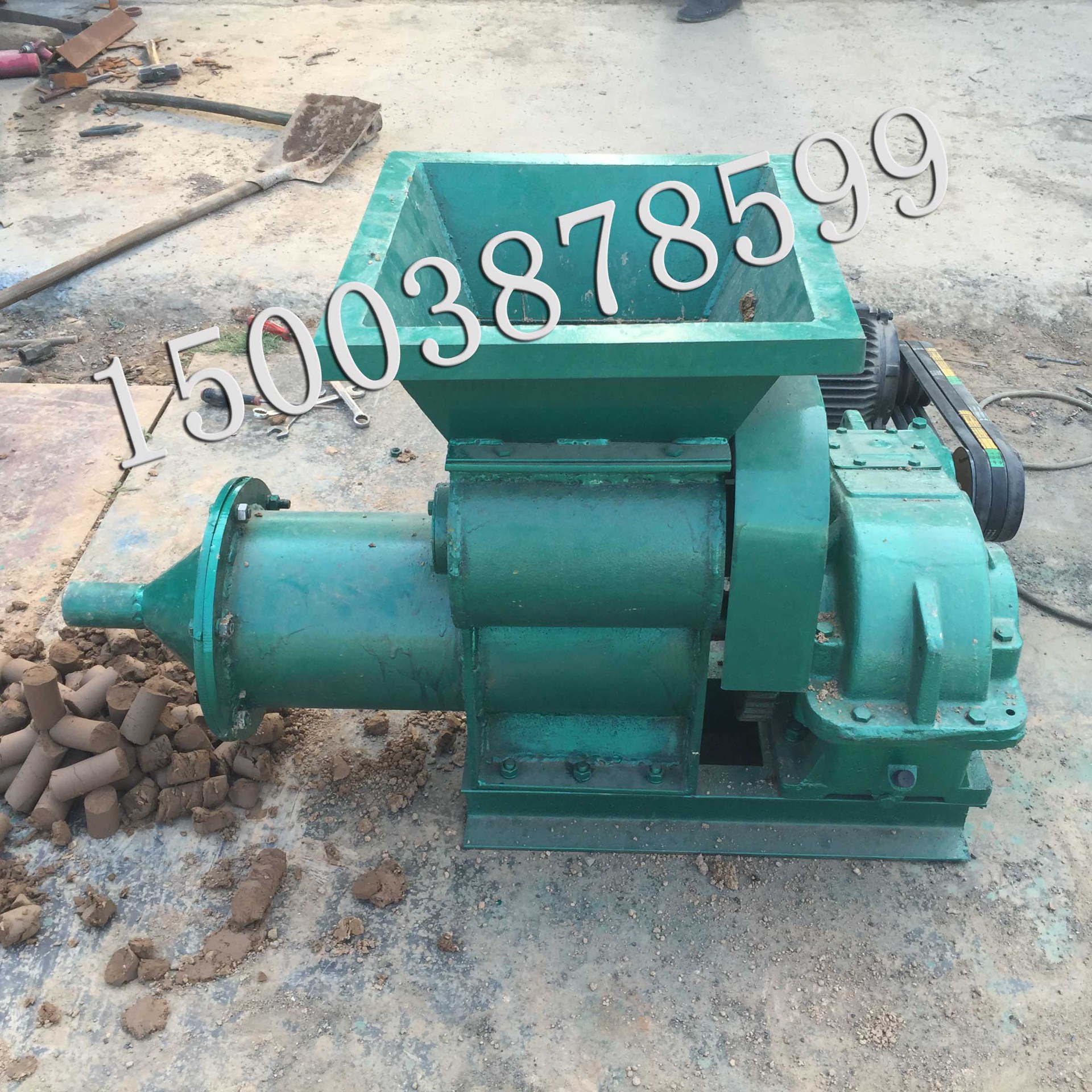 挤泥机,译名炮泥机,搅拌挤出机。陶瓷泥挤出机。配置国际250减速机,加料采用齿轮传动下压方式。解决了练泥机送料难的问题。质量有保障!3至5年不需要维修!主要以生产矿业炮泥,陶瓷加工搅拌陶泥,该机采用双对轴加料搅拌,利用悬浮式旋转泥刀,把原料在泥缸里充分旋转挤压出来。该泥刀可以直接拉出来,方便后期维修,生产出的陶泥硬度粘度都能达到制陶所,减少了人工陶池踩泥的强劳动力。并且减少了人工和泥时泥土粒度大容易出现陶瓷沙眼的问题。注意:转动方向不要接反,不要让硬物进入泥缸里。使用前请给减速机加润滑油。