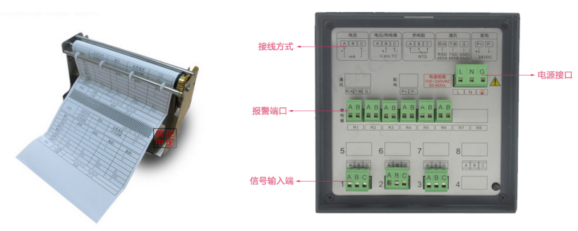 在100mm范围内有800个热印点 对测量值进行趋势记录和数字记录 在记录曲线同时打印标尺刻度及每个通道标记 每隔100mm打印一次刻度值、当前时间和走纸速度 采用进口固定式热敏头,无笔墨消耗,无笔位误差,抗震动