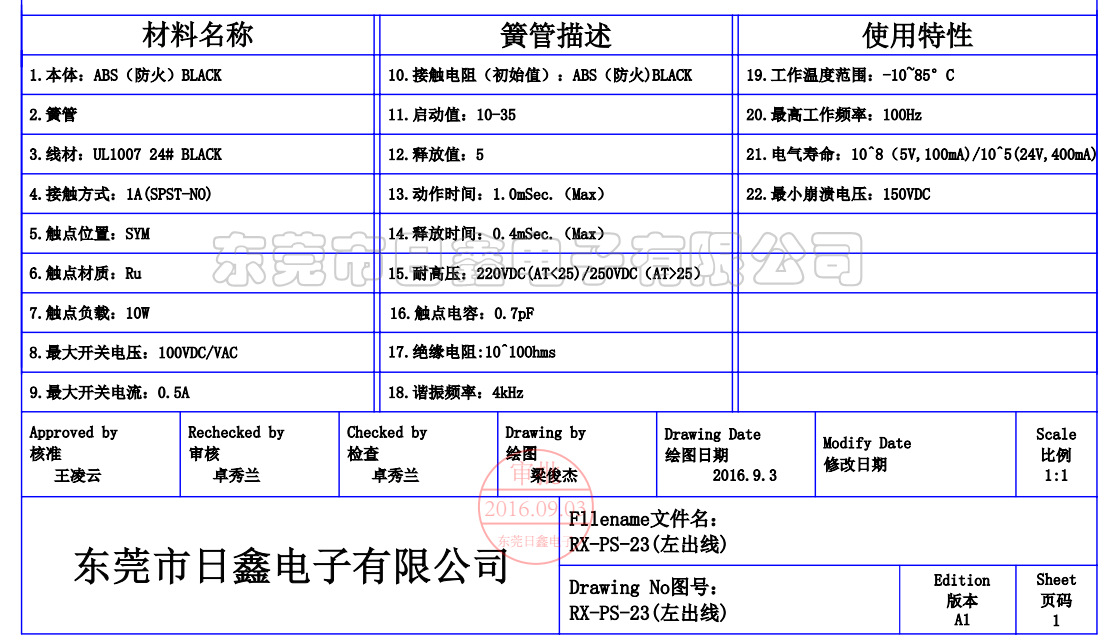 内置干簧管为俄罗斯/美国/日本原装进口,使用寿命长;可动作百万次以上。