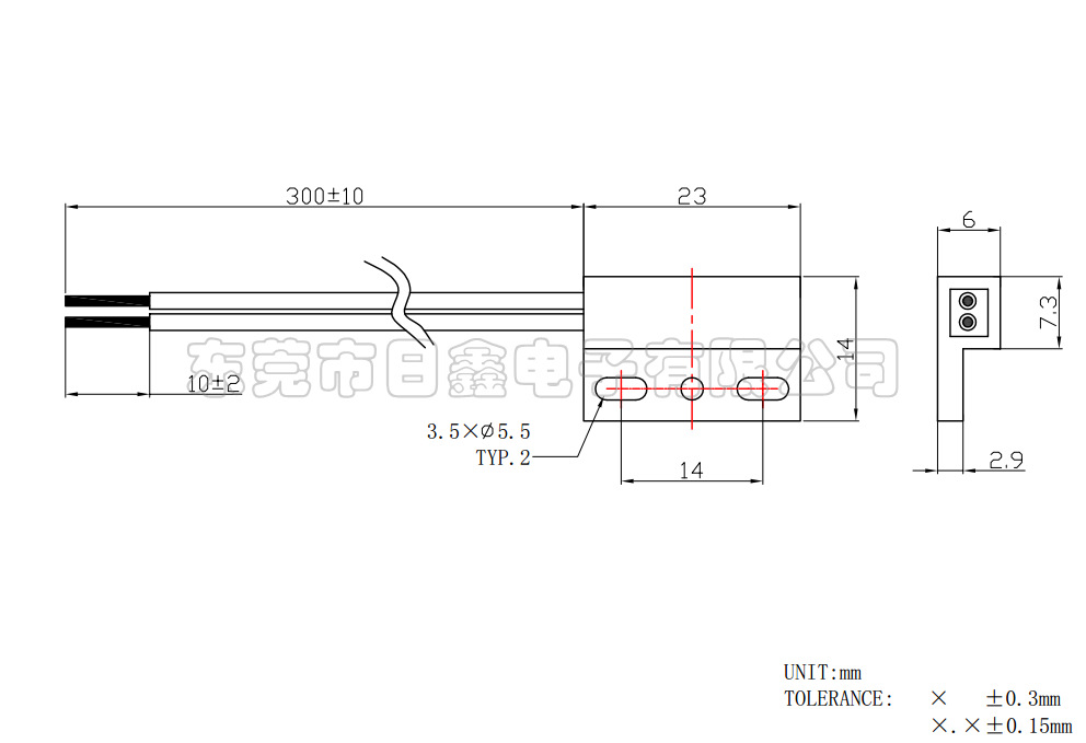 常规线材为UL1007 24#黑线 350mm; 可根据客户需要定制不同的线长及线材/连 接器等。如:加PVC套管/热缩套管/电缆线等等。