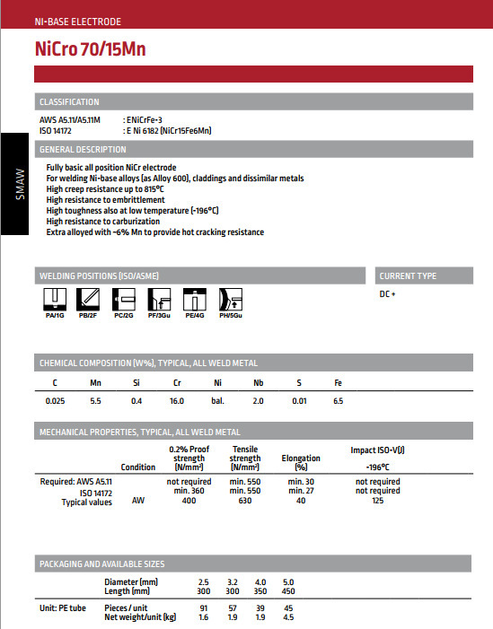 镍及镍合金焊条 |