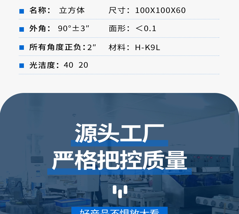 公司总部在河南南阳,加工车间拥有铣磨机、研磨机、抛光机、镀膜机等加工设备若干台,同时拥有激光干涉仪、三坐标测量仪、测角仪、公司产品严格遵循行业通用标准。