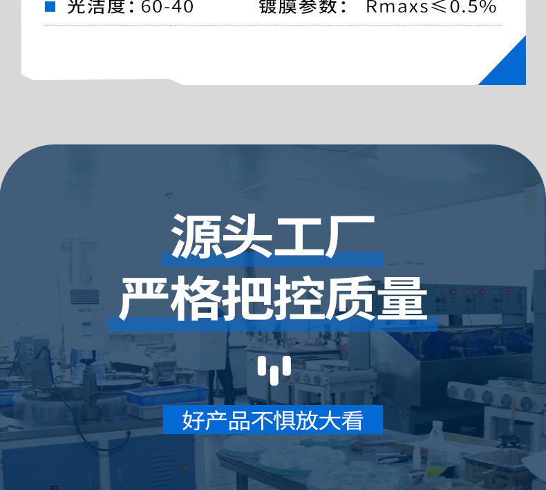 公司的主要优势是支持小批量多规格订单定制,元件下单从下料到镀膜涂黑全流程自有设备加工,透镜最快7天可出样品,棱镜最快5天可出样品。长期以来和各大专院校,科研单位以及国内各大企业建立了良好的合作,公司严格的管理和服务,在国内市场建立了良好的口碑。