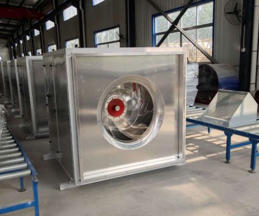 3、风机带有消声外壳,内置吸声材料,方形整体安装牢固、振动小,运行平稳,噪声低。