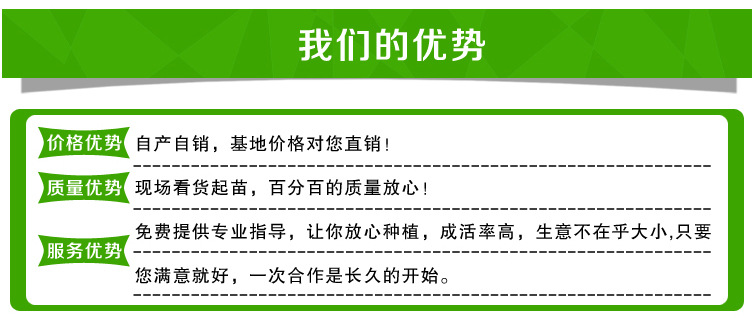 本公司集引种、繁育、实验、推广、服务为一体化的大型果树绿化苗圃,占地800余亩,下设多个基地。