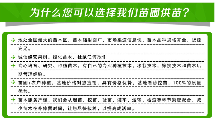 (一)果树苗:[樱桃苗][香椿苗][侧柏苗][香椿苗][海棠苗][梨树苗][花椒苗][山楂苗][柿子苗][桃树苗][梨树苗][苹果苗][板栗苗][杏树苗]等;