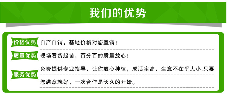 本公司集引种、繁育、实验、推广、服务为一体化的大型果树绿化苗圃,占地800余亩,下设多个基地。