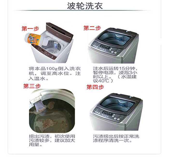1、彻底去除洗衣机内胆、洗衣机夹层槽内因长期使用而积存的大量抗阴离子活性剂的顽垢、污渍。