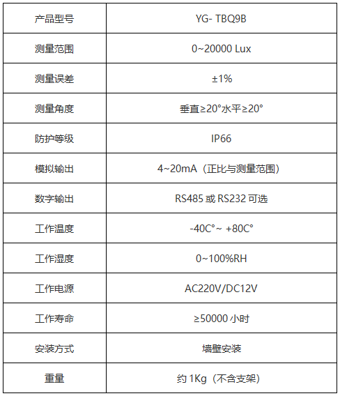 ● 光电池25℃室温条件下标定,在实际运行中误差自动修正为<±1%。